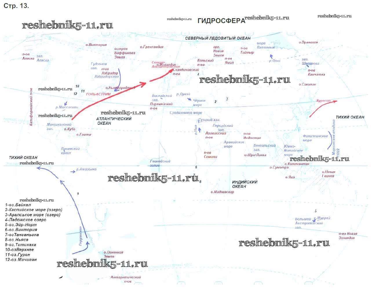 Готовая домашняя работа с ответами по Географии за 6 класс Душина, Летягин Контурные карты Аст/Астрель 2020 ФГОС - Страницы 13