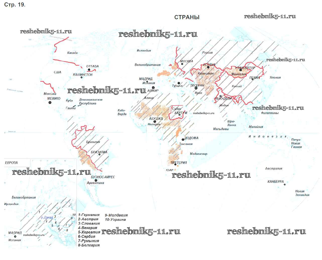 Готовая домашняя работа с ответами по Географии за 6 класс Душина, Летягин Контурные карты Аст/Астрель 2020 ФГОС - Страницы 19