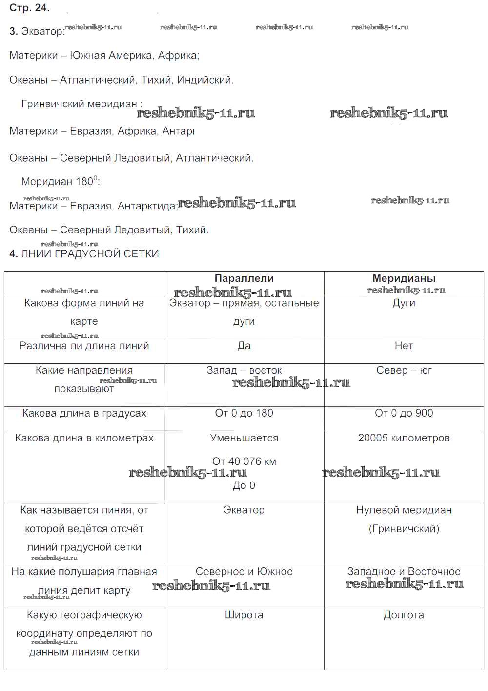 Готовая домашняя работа с ответами по Географии за 5, 6 класс Лобжанидзе Тетрадь-тренажер Сферы Часть 1, 2 Просвещение 2014 ФГОС - Часть 1. Страницы 24