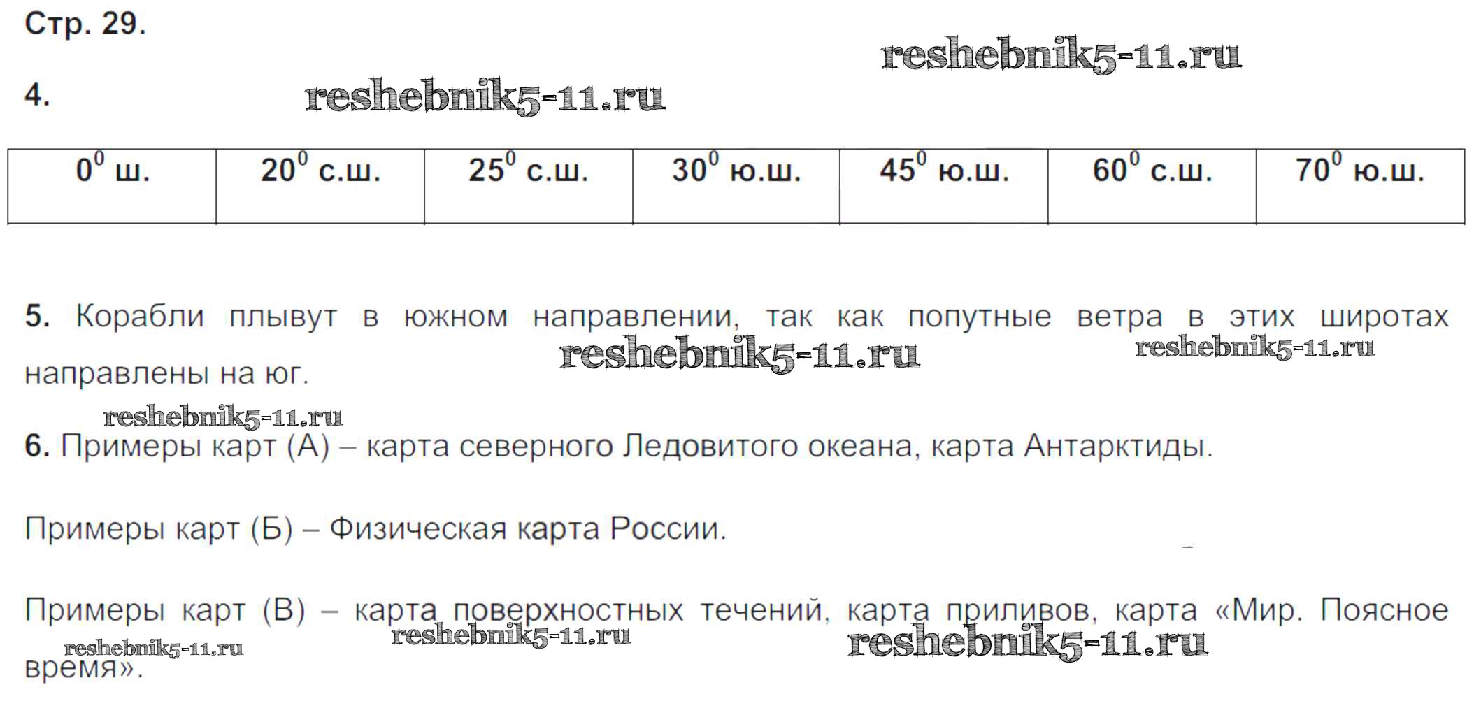 Готовая домашняя работа с ответами по Географии за 5, 6 класс Лобжанидзе Тетрадь-тренажер Сферы Часть 1, 2 Просвещение 2014 ФГОС - Часть 1. Страницы 29