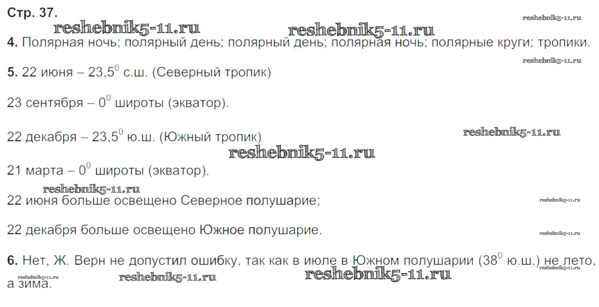 Готовая домашняя работа с ответами по Географии за 5, 6 класс Лобжанидзе Тетрадь-тренажер Сферы Часть 1, 2 Просвещение 2014 ФГОС - Часть 1. Страницы 37