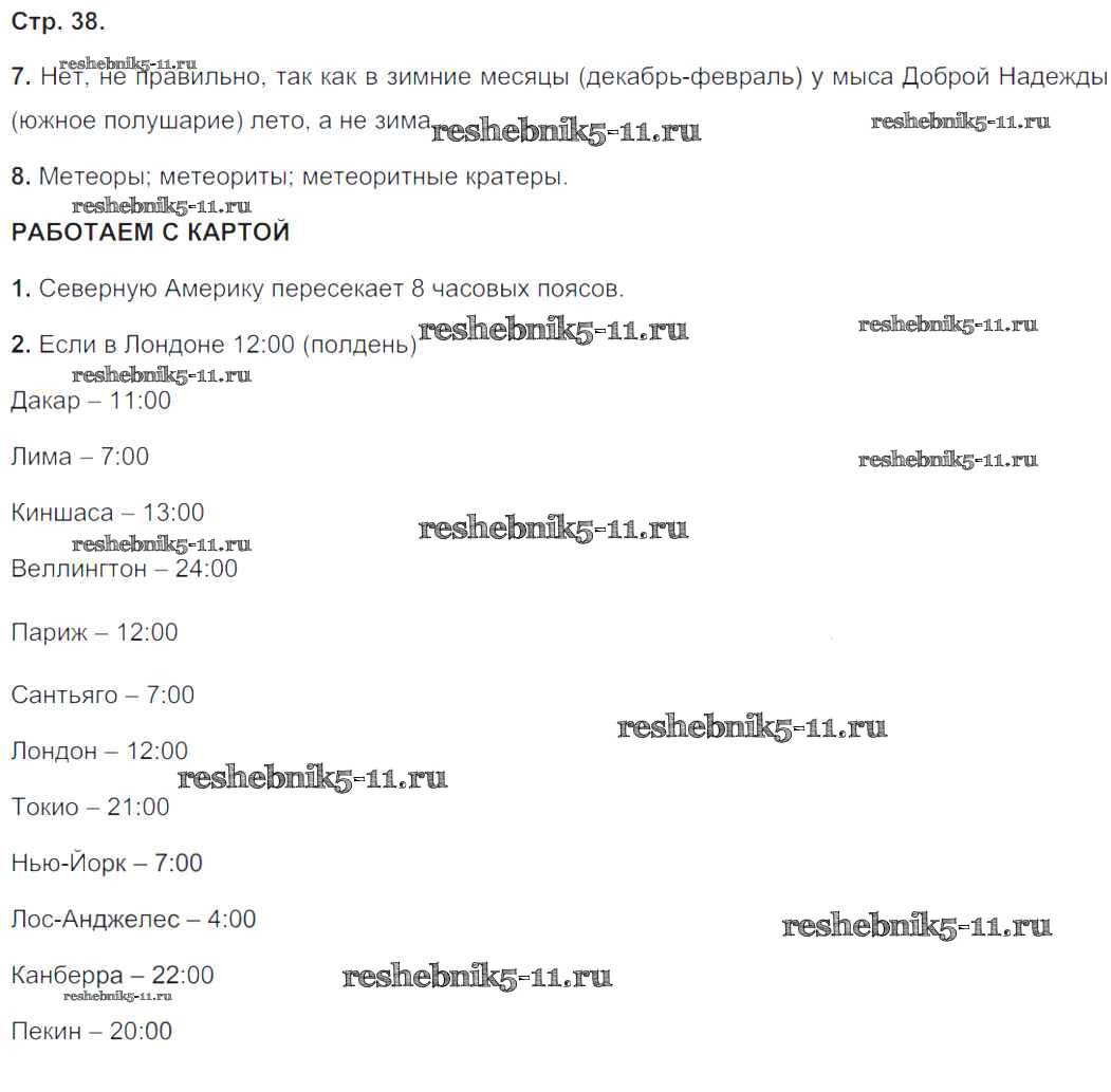 Готовая домашняя работа с ответами по Географии за 5, 6 класс Лобжанидзе Тетрадь-тренажер Сферы Часть 1, 2 Просвещение 2014 ФГОС - Часть 1. Страницы 38