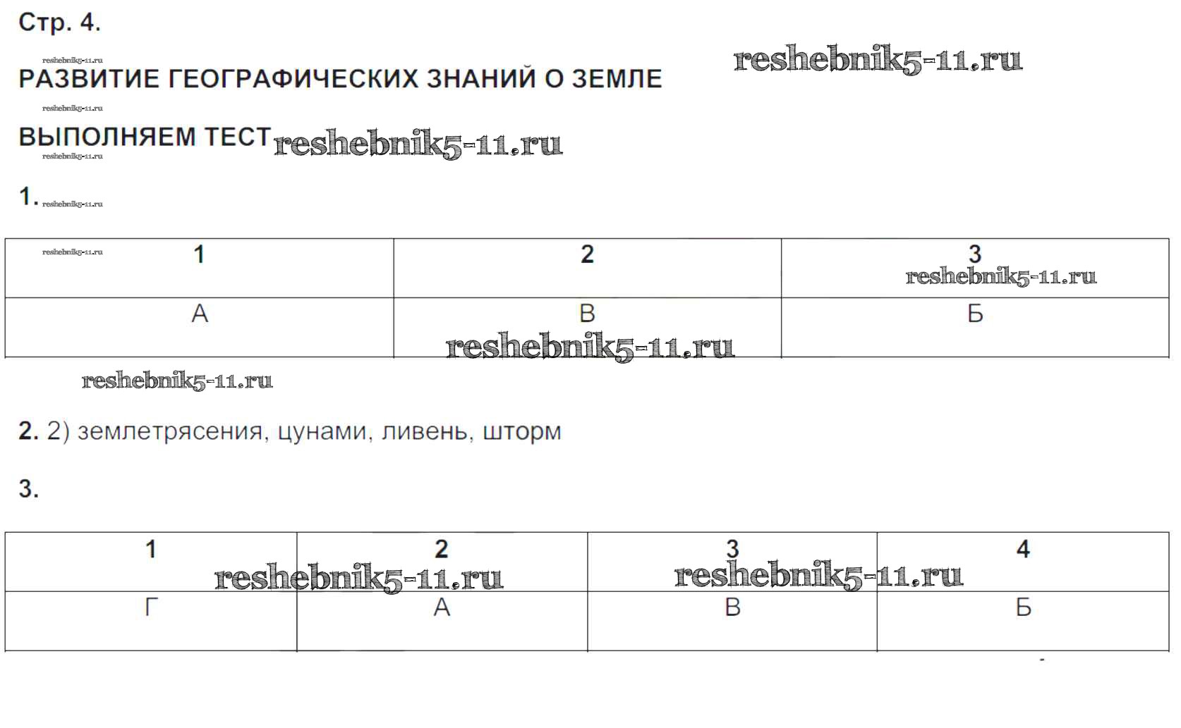Готовая домашняя работа с ответами по Географии за 5, 6 класс Лобжанидзе Тетрадь-тренажер Сферы Часть 1, 2 Просвещение 2014 ФГОС - Часть 1. Страницы 4