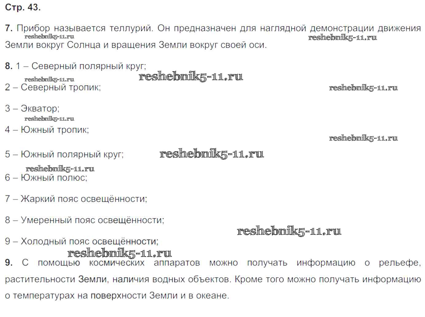 Готовая домашняя работа с ответами по Географии за 5, 6 класс Лобжанидзе Тетрадь-тренажер Сферы Часть 1, 2 Просвещение 2014 ФГОС - Часть 1. Страницы 43