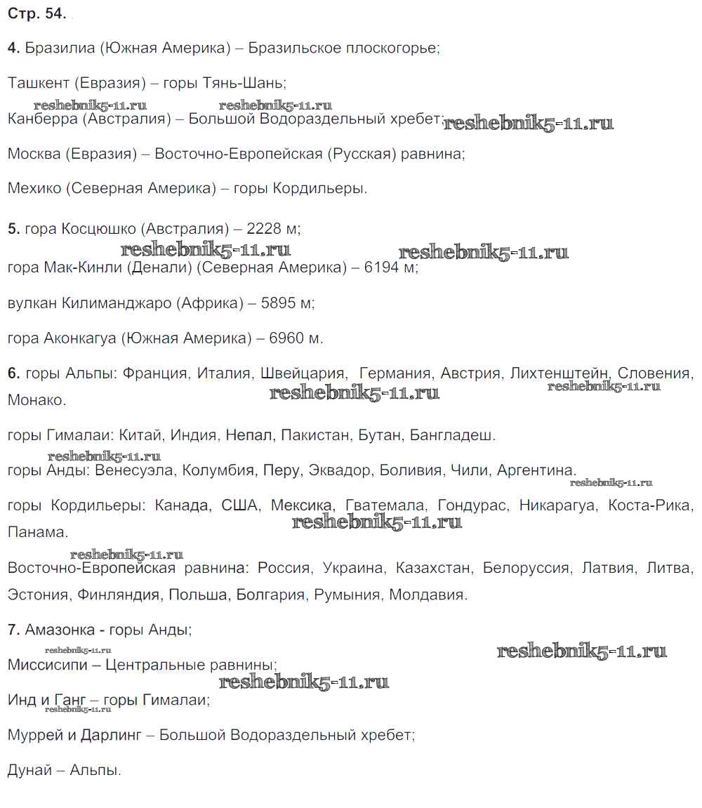 Готовая домашняя работа с ответами по Географии за 5, 6 класс Лобжанидзе Тетрадь-тренажер Сферы Часть 1, 2 Просвещение 2014 ФГОС - Часть 1. Страницы 54