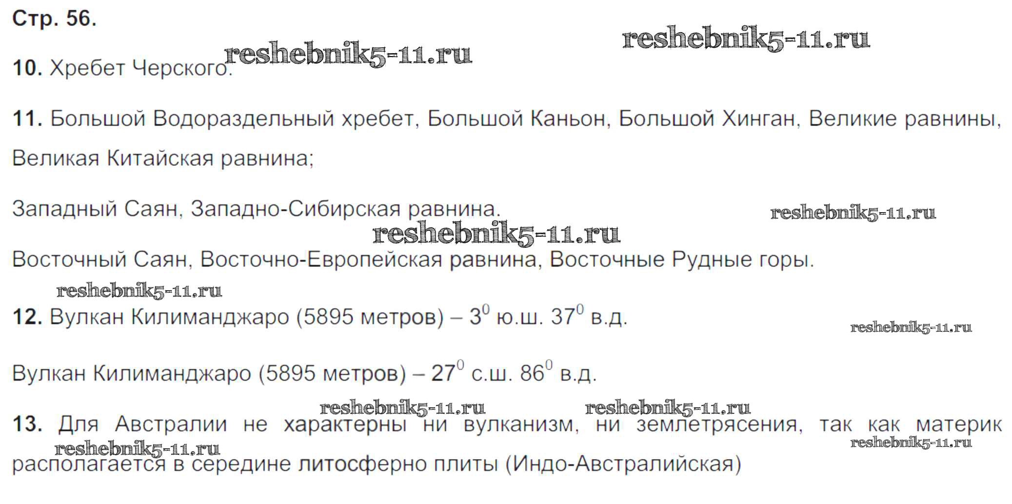 Готовая домашняя работа с ответами по Географии за 5, 6 класс Лобжанидзе Тетрадь-тренажер Сферы Часть 1, 2 Просвещение 2014 ФГОС - Часть 1. Страницы 56