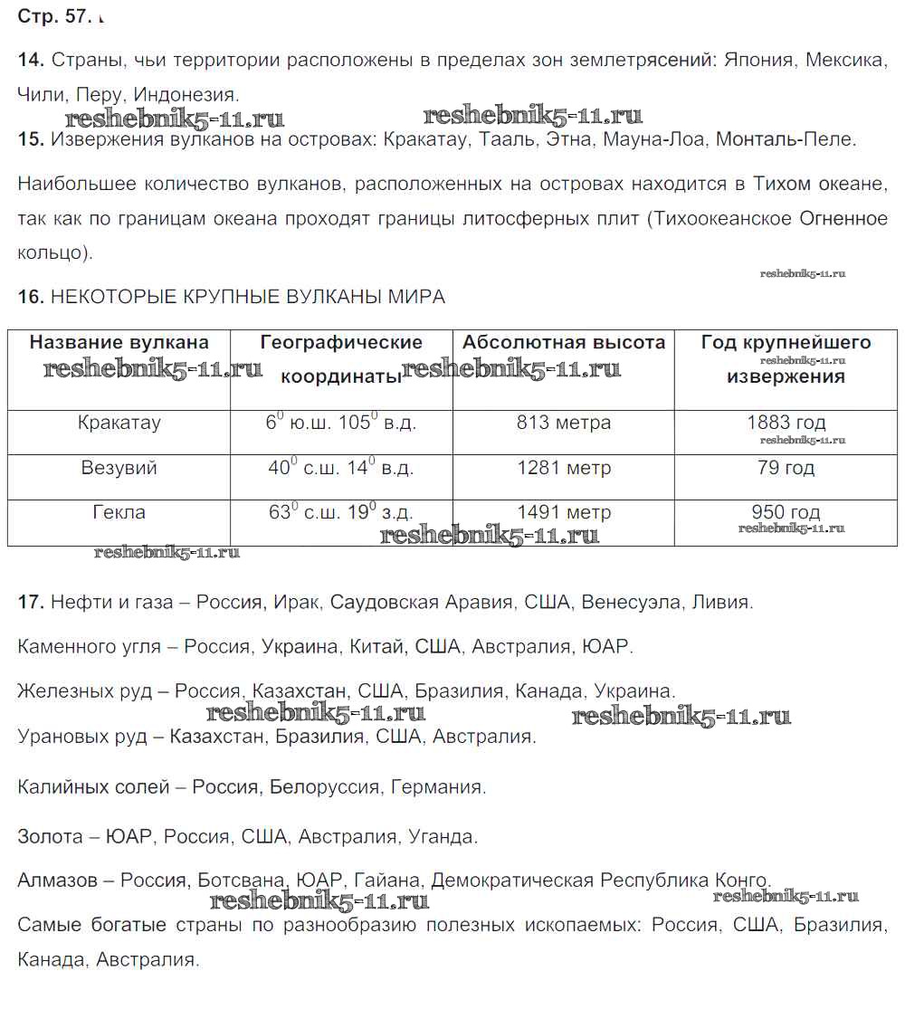 Готовая домашняя работа с ответами по Географии за 5, 6 класс Лобжанидзе Тетрадь-тренажер Сферы Часть 1, 2 Просвещение 2014 ФГОС - Часть 1. Страницы 57