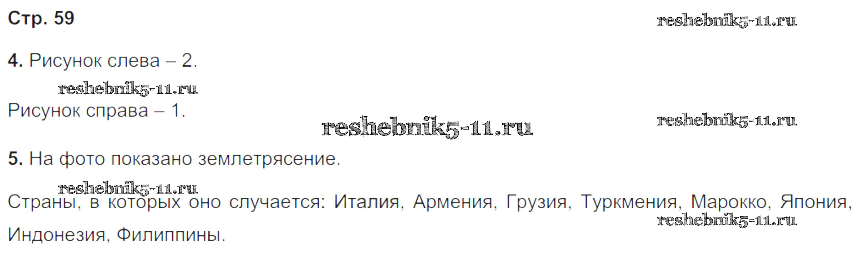 Готовая домашняя работа с ответами по Географии за 5, 6 класс Лобжанидзе Тетрадь-тренажер Сферы Часть 1, 2 Просвещение 2014 ФГОС - Часть 1. Страницы 59