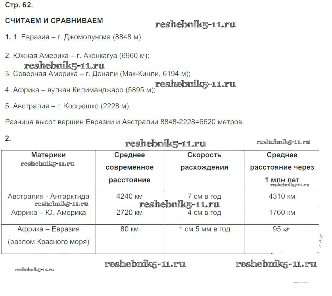 Готовая домашняя работа с ответами по Географии за 5, 6 класс Лобжанидзе Тетрадь-тренажер Сферы Часть 1, 2 Просвещение 2014 ФГОС - Часть 1. Страницы 62