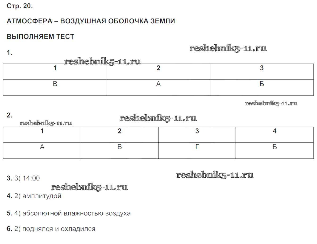 Готовая домашняя работа с ответами по Географии за 5, 6 класс Лобжанидзе Тетрадь-тренажер Сферы Часть 1, 2 Просвещение 2014 ФГОС - Часть 2. Страницы 20