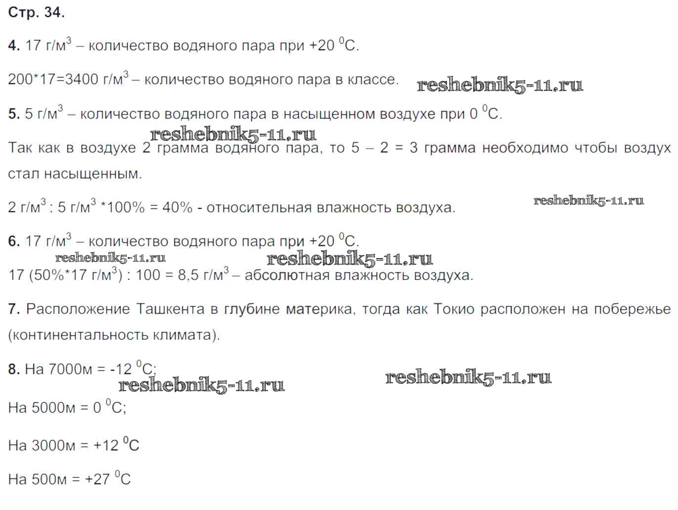 Готовая домашняя работа с ответами по Географии за 5, 6 класс Лобжанидзе Тетрадь-тренажер Сферы Часть 1, 2 Просвещение 2014 ФГОС - Часть 2. Страницы 34