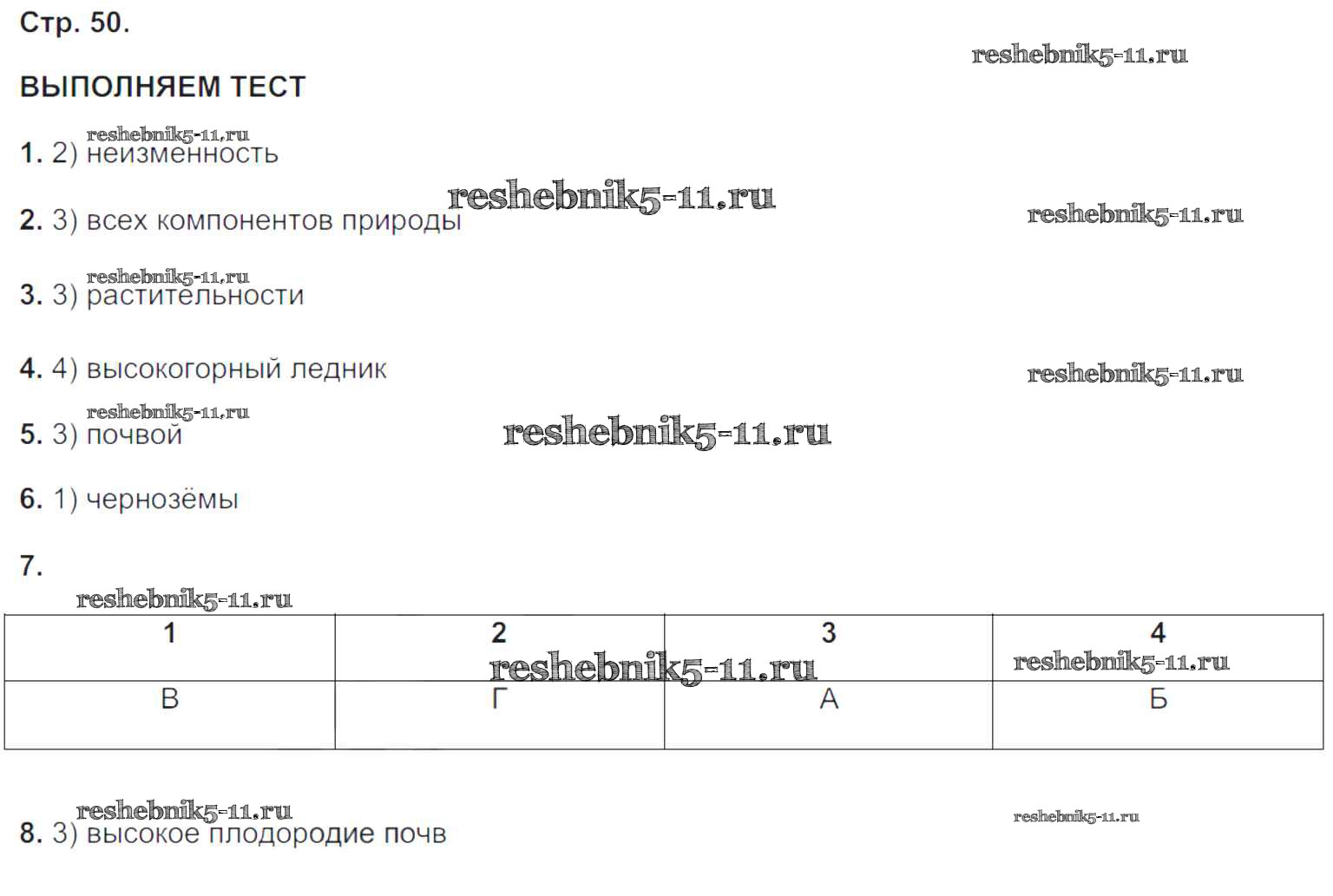 Готовая домашняя работа с ответами по Географии за 5, 6 класс Лобжанидзе Тетрадь-тренажер Сферы Часть 1, 2 Просвещение 2014 ФГОС - Часть 2. Страницы 50
