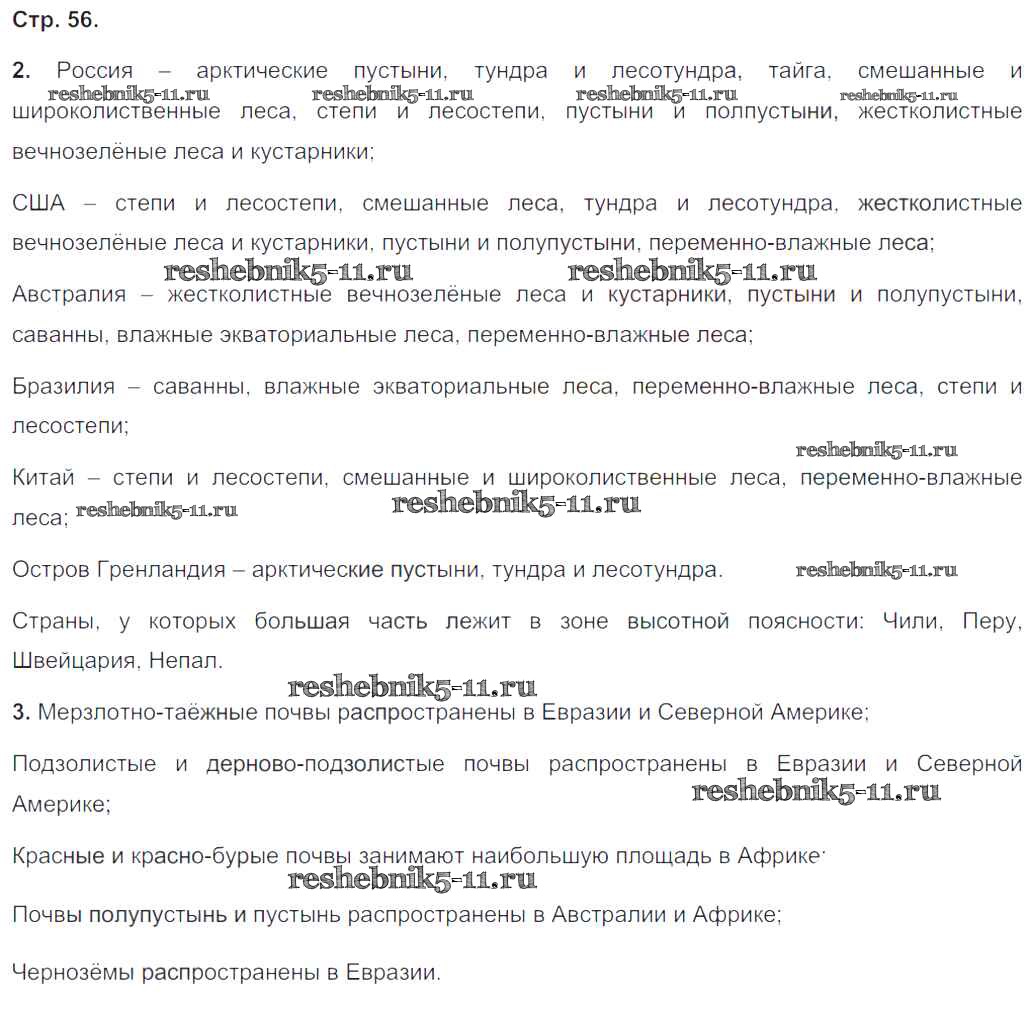 Готовая домашняя работа с ответами по Географии за 5, 6 класс Лобжанидзе Тетрадь-тренажер Сферы Часть 1, 2 Просвещение 2014 ФГОС - Часть 2. Страницы 56