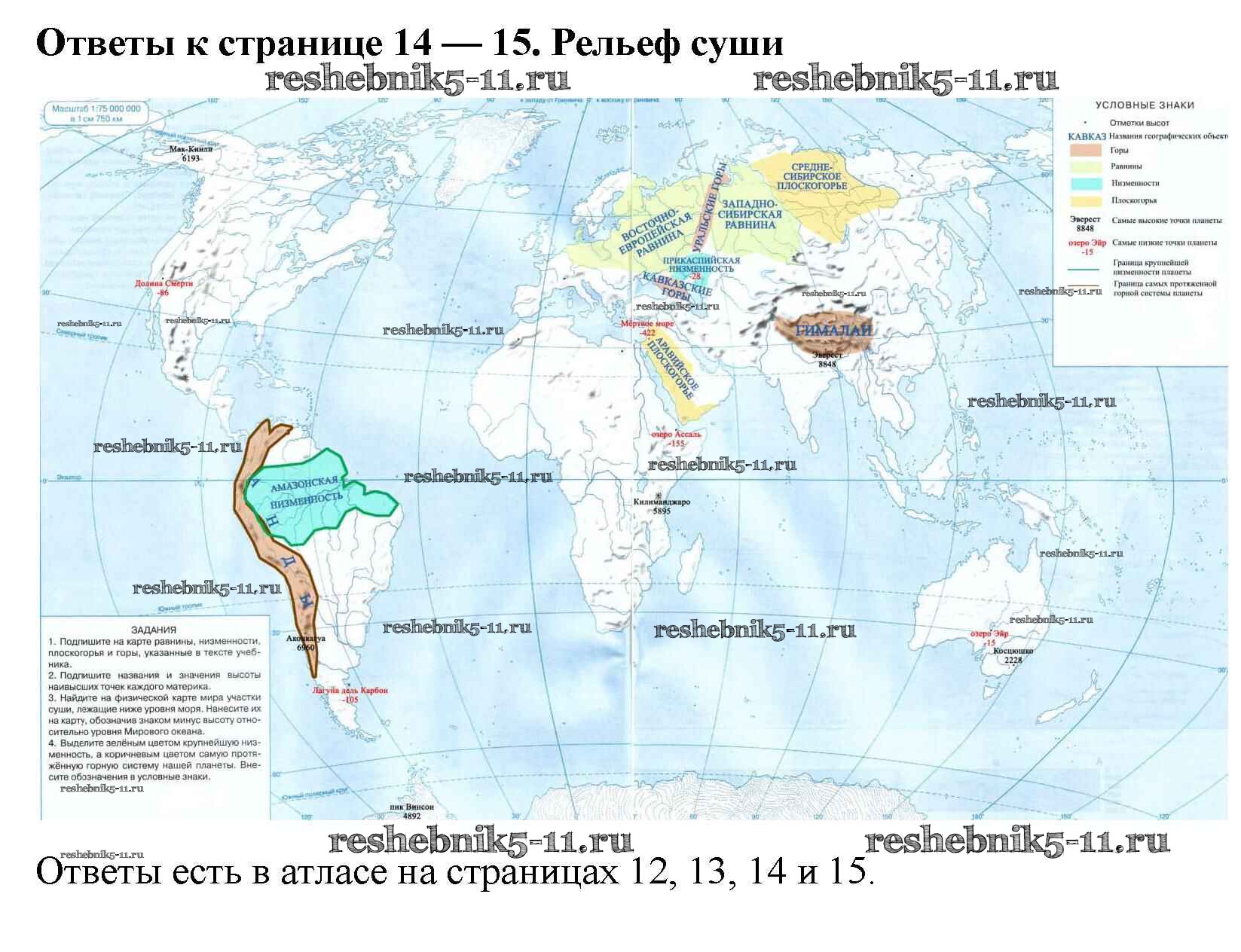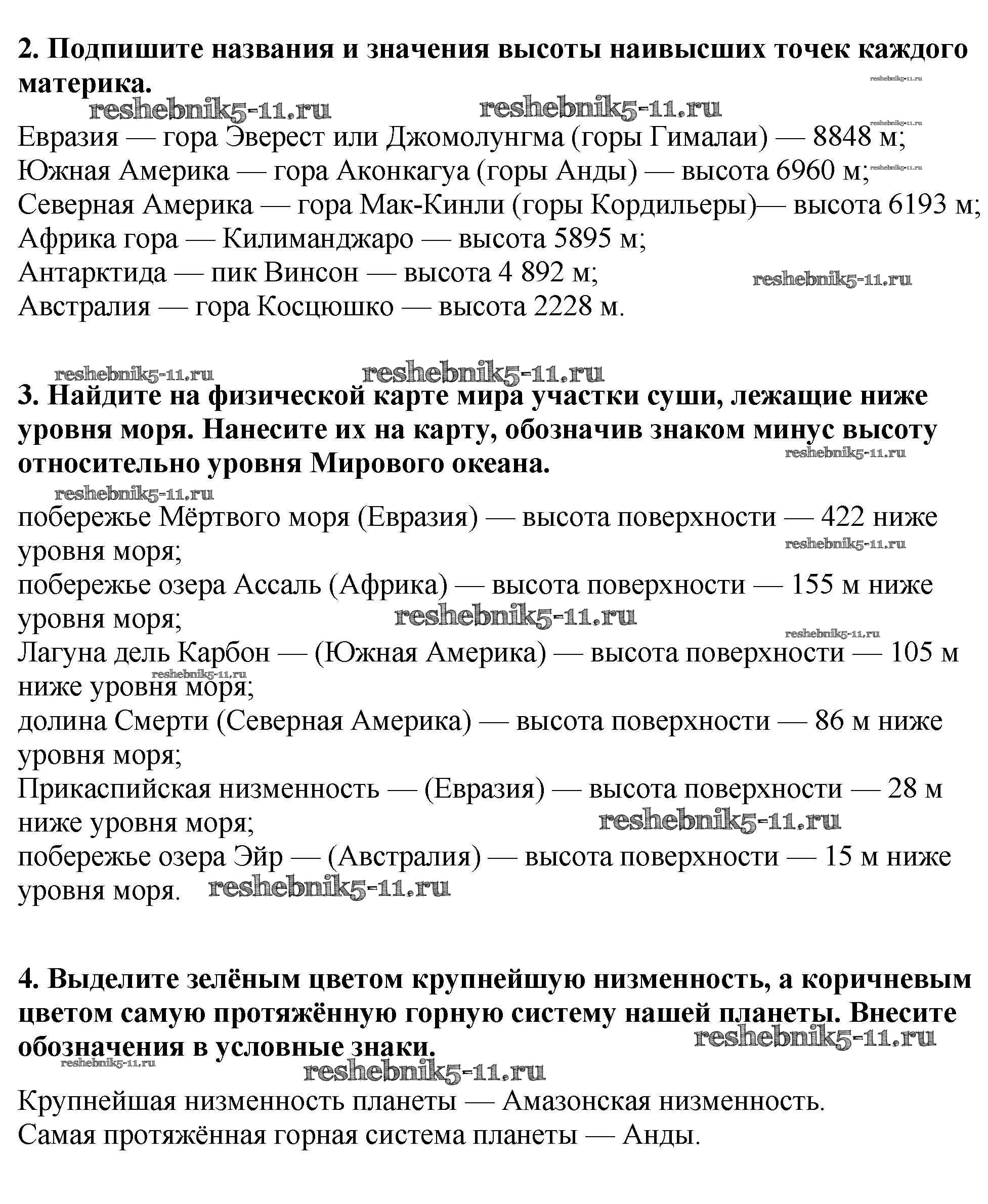 Готовая домашняя работа с ответами по Географии за 6 класс Курчина, Курбский Контурные карты Часть 1, 2 Дрофа 2019 ФГОС - Новое издание стр.14-15