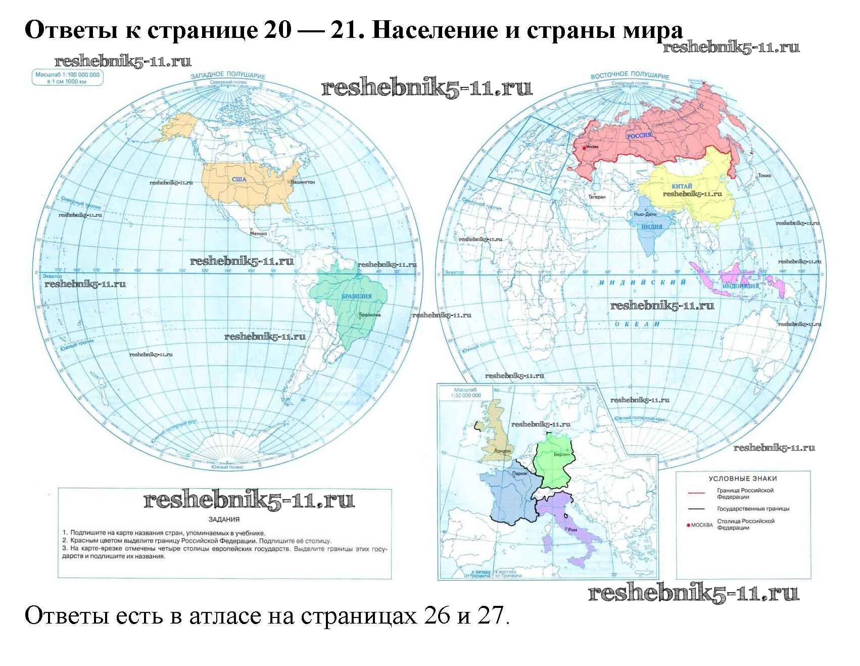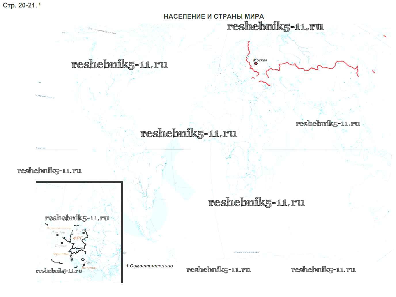 Готовая домашняя работа с ответами по Географии за 6 класс Курчина, Курбский Контурные карты Часть 1, 2 Дрофа 2019 ФГОС - Новое издание стр.20-21