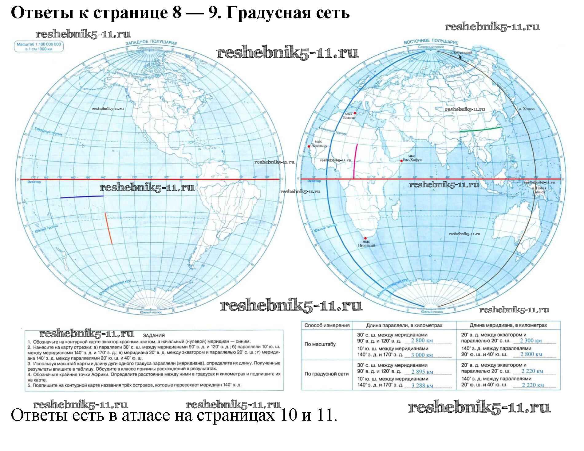 Готовая домашняя работа с ответами по Географии за 6 класс Курчина, Курбский Контурные карты Часть 1, 2 Дрофа 2019 ФГОС - Новое издание стр.8-9