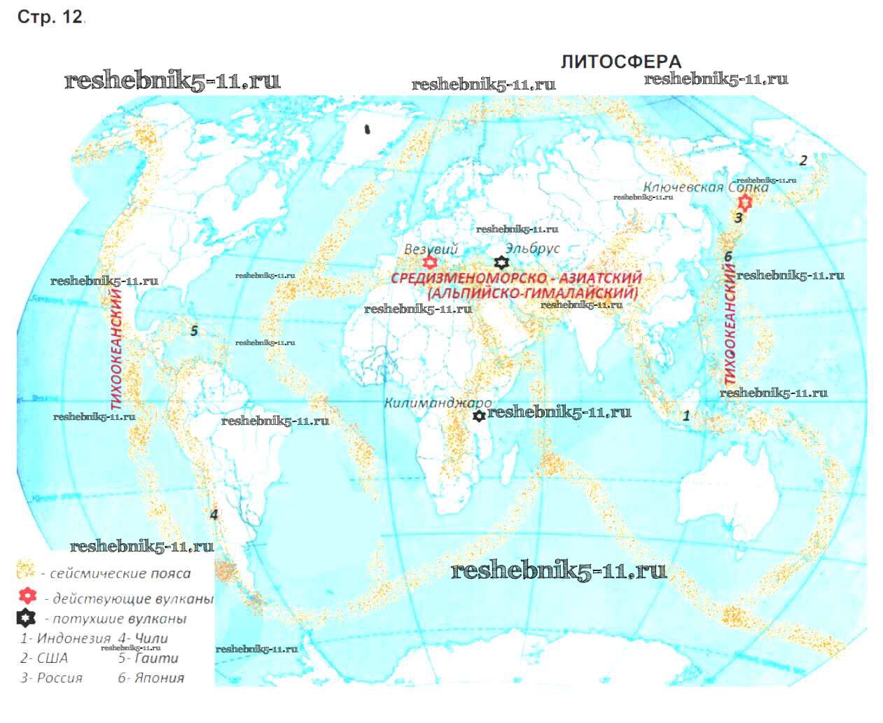 Готовая домашняя работа с ответами по Географии за 6 класс Курчина, Курбский Контурные карты Часть 1, 2 Дрофа 2019 ФГОС - Старое издание стр.12