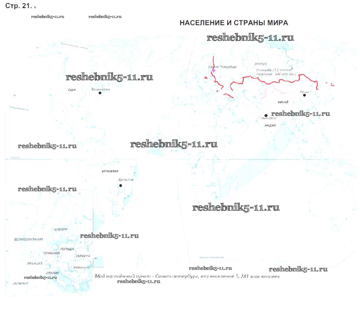 Готовая домашняя работа с ответами по Географии за 6 класс Курчина, Курбский Контурные карты Часть 1, 2 Дрофа 2019 ФГОС - Старое издание стр.21