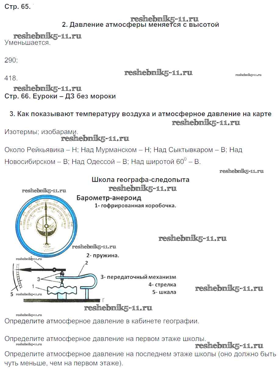 Готовая домашняя работа с ответами по Географии за 6 класс Летягин Дневник географа-следопыта Алгоритм успеха Вентана-граф 2020 ФГОС - Страницы 65