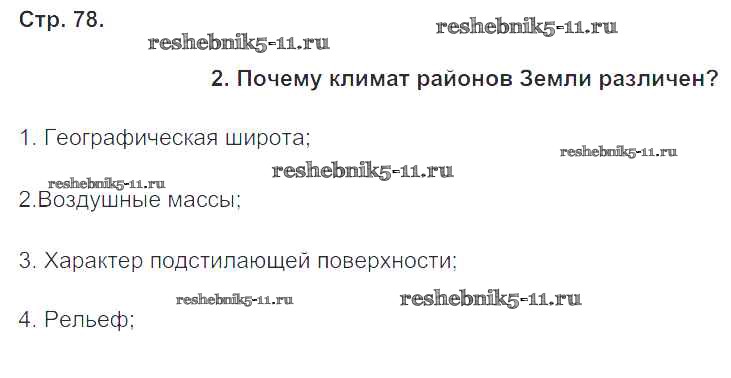Готовая домашняя работа с ответами по Географии за 6 класс Летягин Дневник географа-следопыта Алгоритм успеха Вентана-граф 2020 ФГОС - Страницы 78