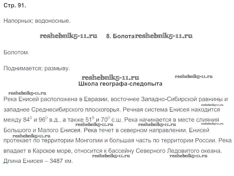 Готовая домашняя работа с ответами по Географии за 6 класс Летягин Дневник географа-следопыта Алгоритм успеха Вентана-граф 2020 ФГОС - Страницы 91