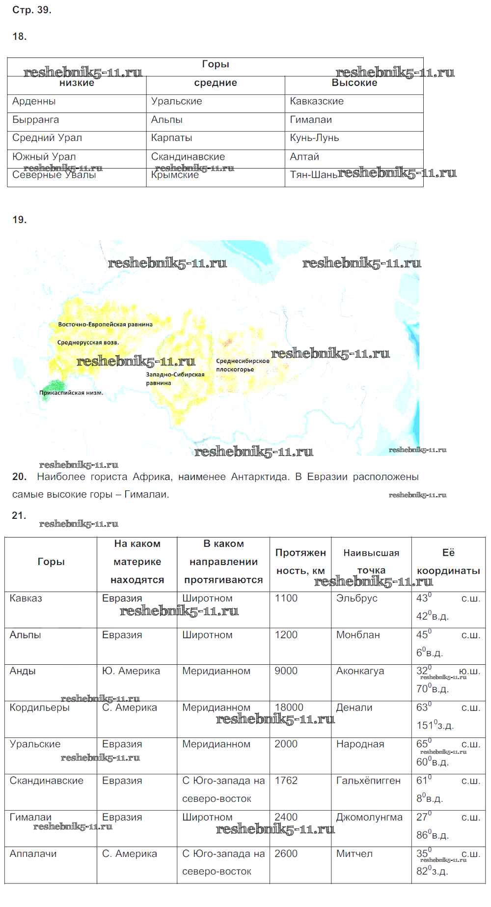 Готовая домашняя работа с ответами по Географии за 5, 6 класс Николина Мой тренажёр Полярная звезда Просвещение 2014 ФГОС - Страницы 39