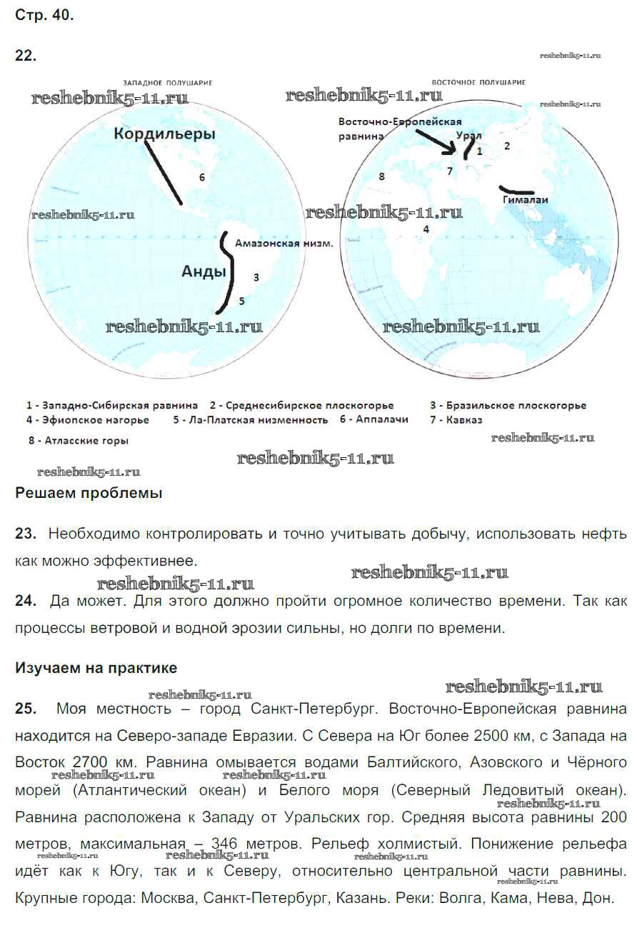 Готовая домашняя работа с ответами по Географии за 5, 6 класс Николина Мой тренажёр Полярная звезда Просвещение 2014 ФГОС - Страницы 40