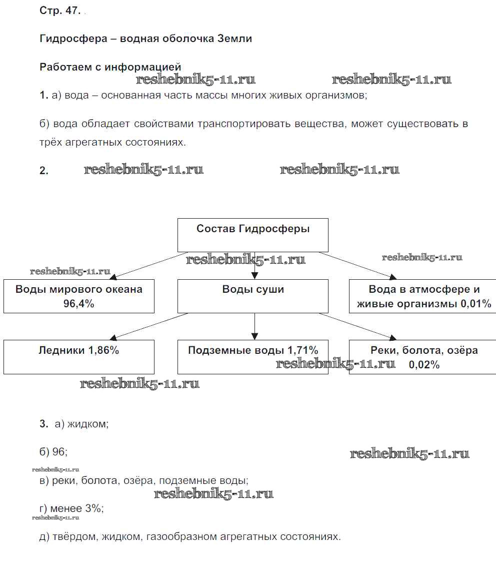Готовая домашняя работа с ответами по Географии за 5, 6 класс Николина Мой тренажёр Полярная звезда Просвещение 2014 ФГОС - Страницы 47