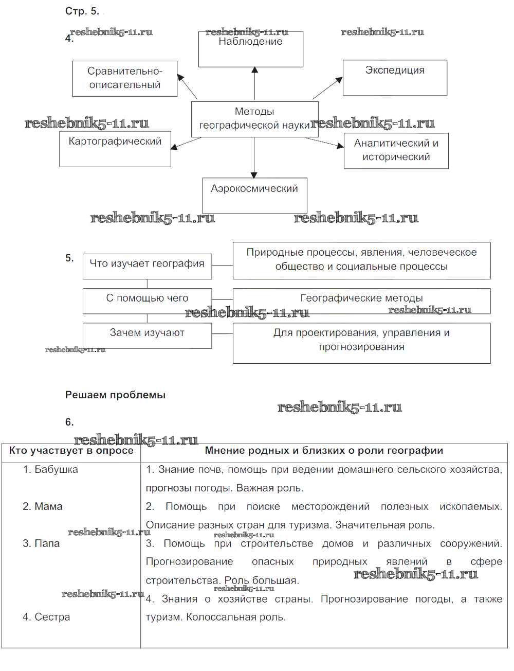 Готовая домашняя работа с ответами по Географии за 5, 6 класс Николина Мой тренажёр Полярная звезда Просвещение 2014 ФГОС - Страницы 5