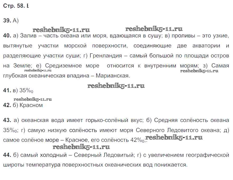 Готовая домашняя работа с ответами по Географии за 5, 6 класс Николина Мой тренажёр Полярная звезда Просвещение 2014 ФГОС - Страницы 58