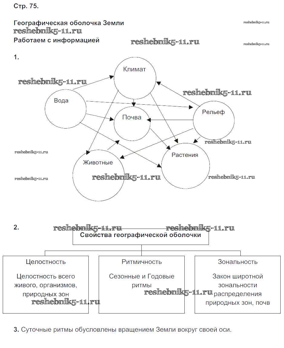 Готовая домашняя работа с ответами по Географии за 5, 6 класс Николина Мой тренажёр Полярная звезда Просвещение 2014 ФГОС - Страницы 75
