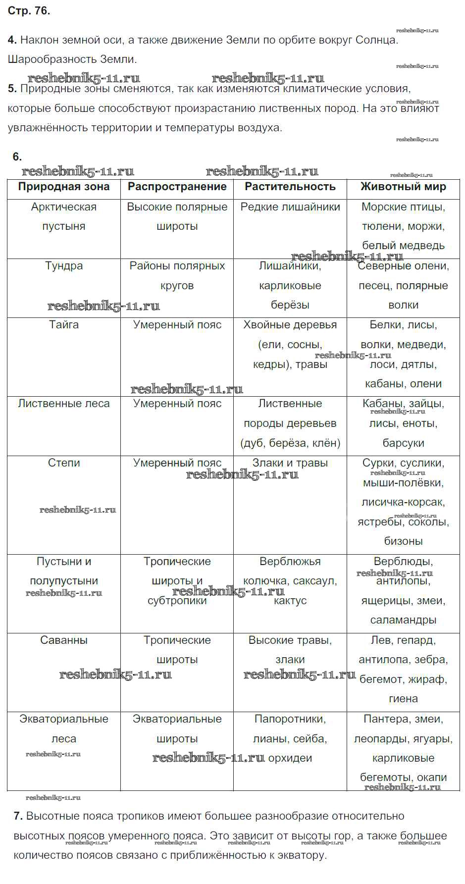 Готовая домашняя работа с ответами по Географии за 5, 6 класс Николина Мой тренажёр Полярная звезда Просвещение 2014 ФГОС - Страницы 76