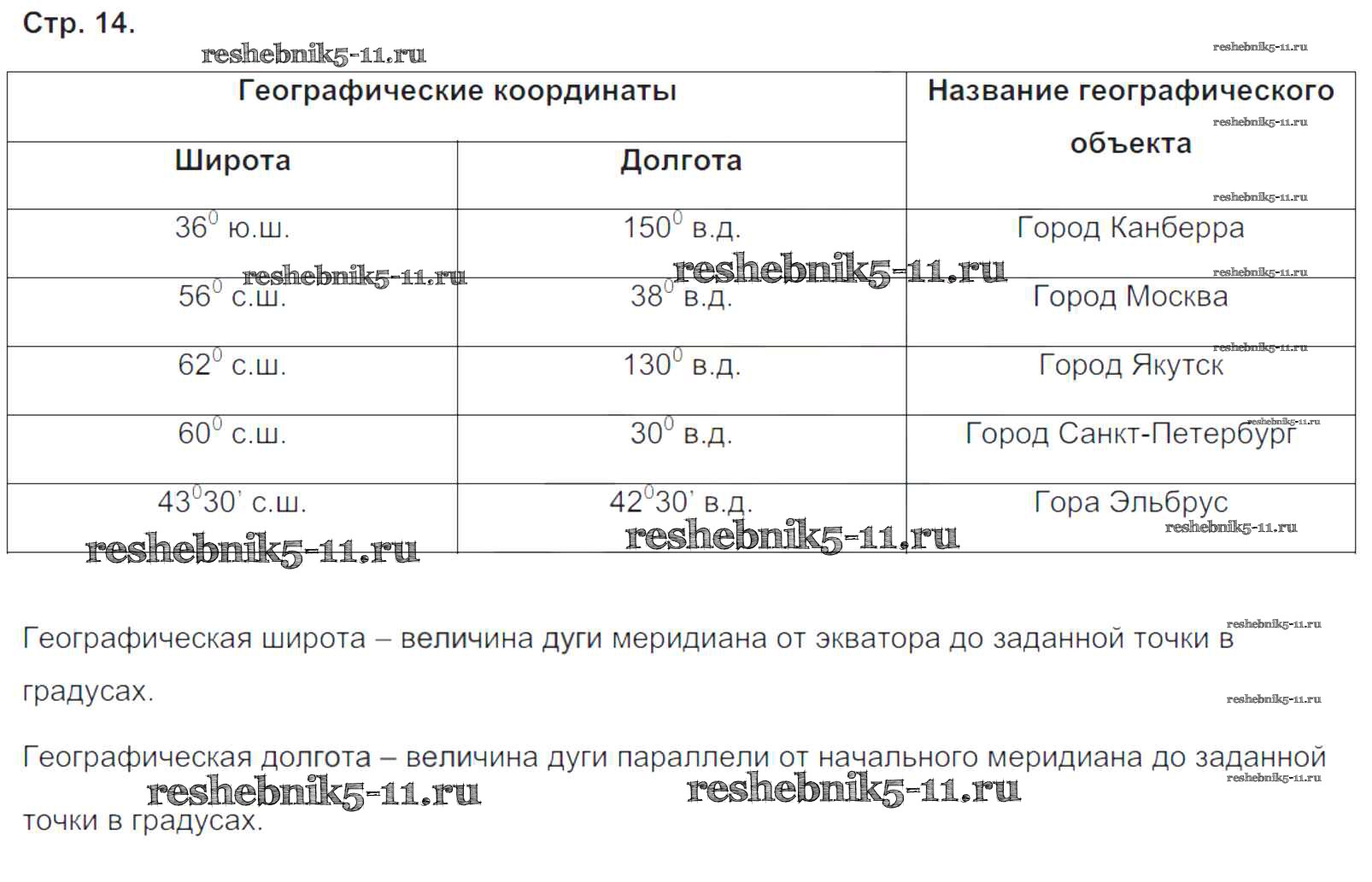Готовая домашняя работа с ответами по Географии за 5, 6 класс Сиротин Рабочая тетрадь Дрофа 2019 ФГОС - Страницы 14