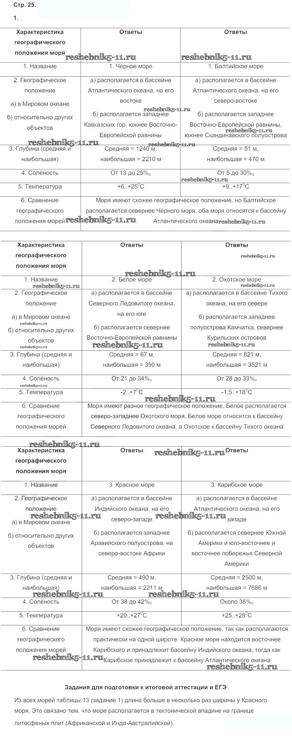 Готовая домашняя работа с ответами по Географии за 5, 6 класс Сиротин Рабочая тетрадь Дрофа 2019 ФГОС - Страницы 25