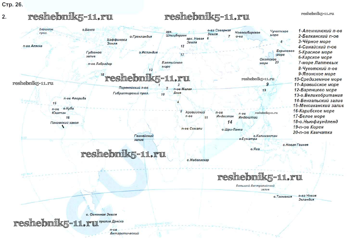 Готовая домашняя работа с ответами по Географии за 5, 6 класс Сиротин Рабочая тетрадь Дрофа 2019 ФГОС - Страницы 26