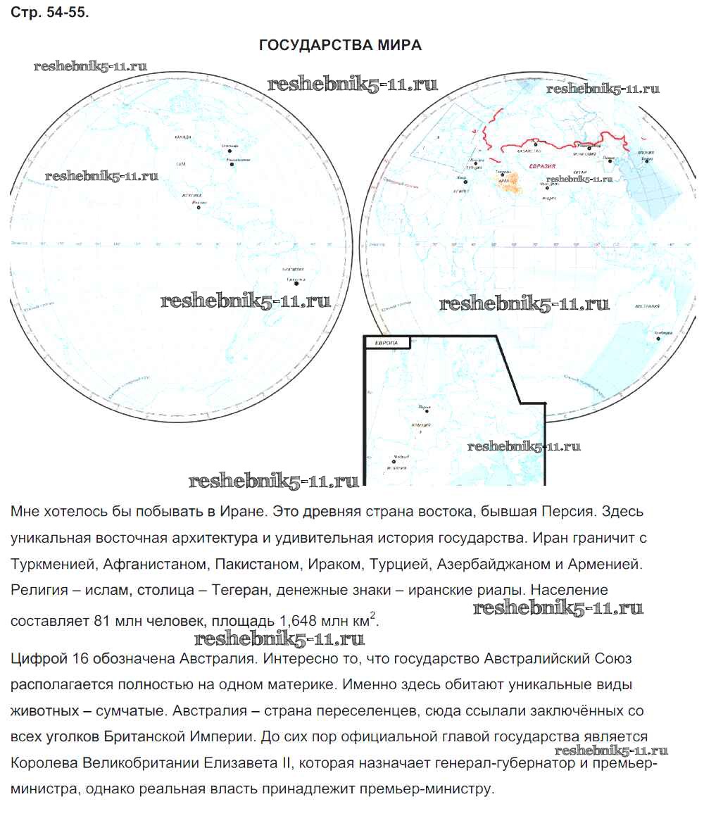 Готовая домашняя работа с ответами по Географии за 5, 6 класс Сиротин Рабочая тетрадь Дрофа 2019 ФГОС - Страницы 55