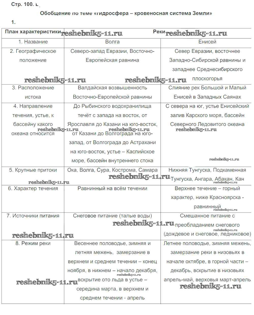 Готовая домашняя работа с ответами по Географии за 6 класс Румянцев, Ким, Климанова Рабочая тетрадь Вертикаль Дрофа 2015 ФГОС - Страницы тетради 100