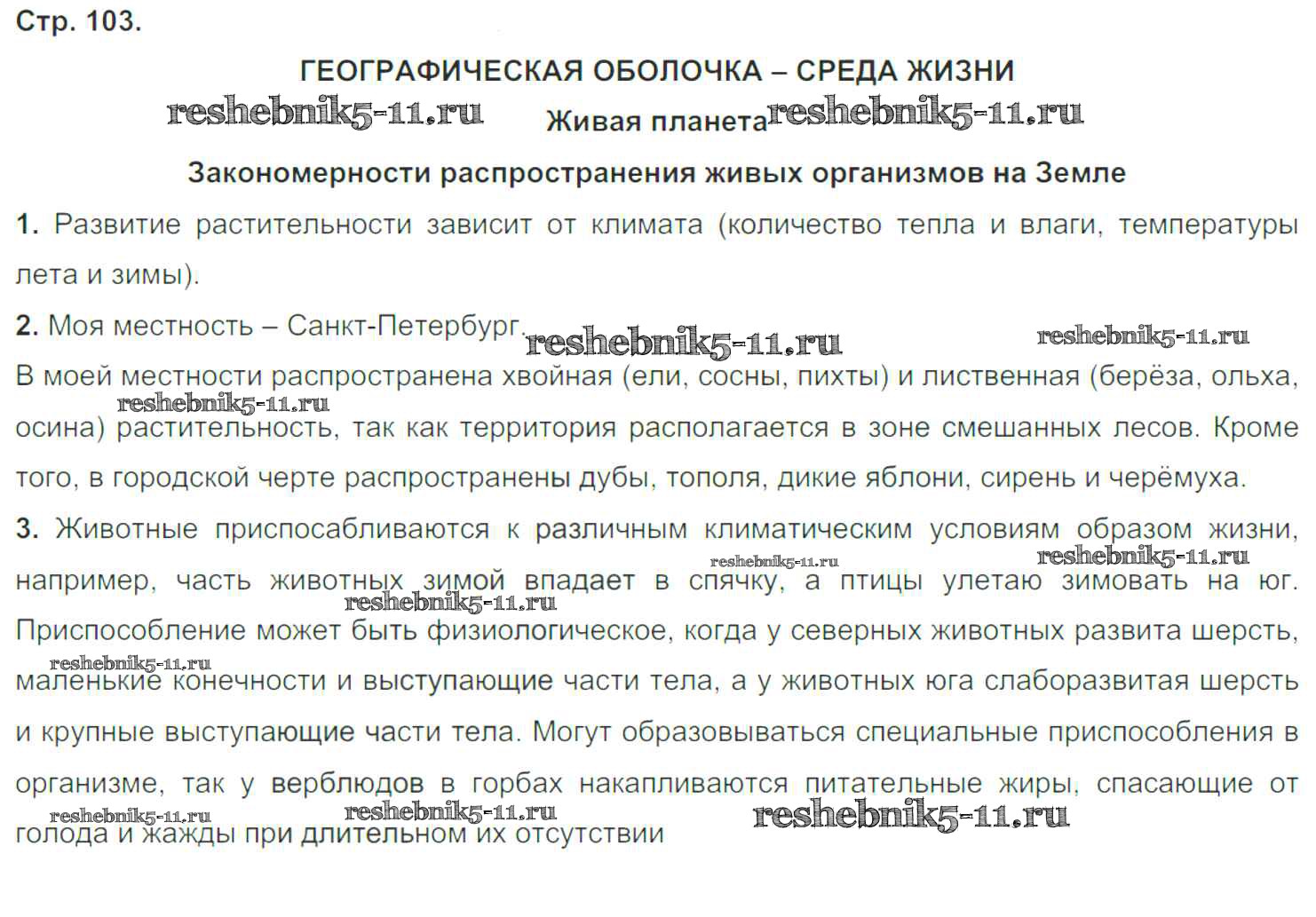 Готовая домашняя работа с ответами по Географии за 6 класс Румянцев, Ким, Климанова Рабочая тетрадь Вертикаль Дрофа 2015 ФГОС - Страницы тетради 103