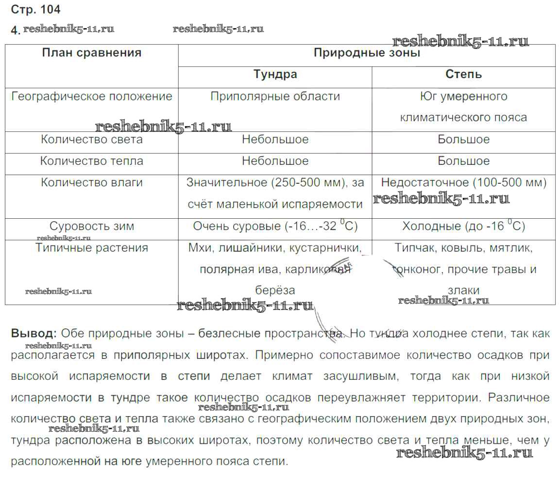 Готовая домашняя работа с ответами по Географии за 6 класс Румянцев, Ким, Климанова Рабочая тетрадь Вертикаль Дрофа 2015 ФГОС - Страницы тетради 104