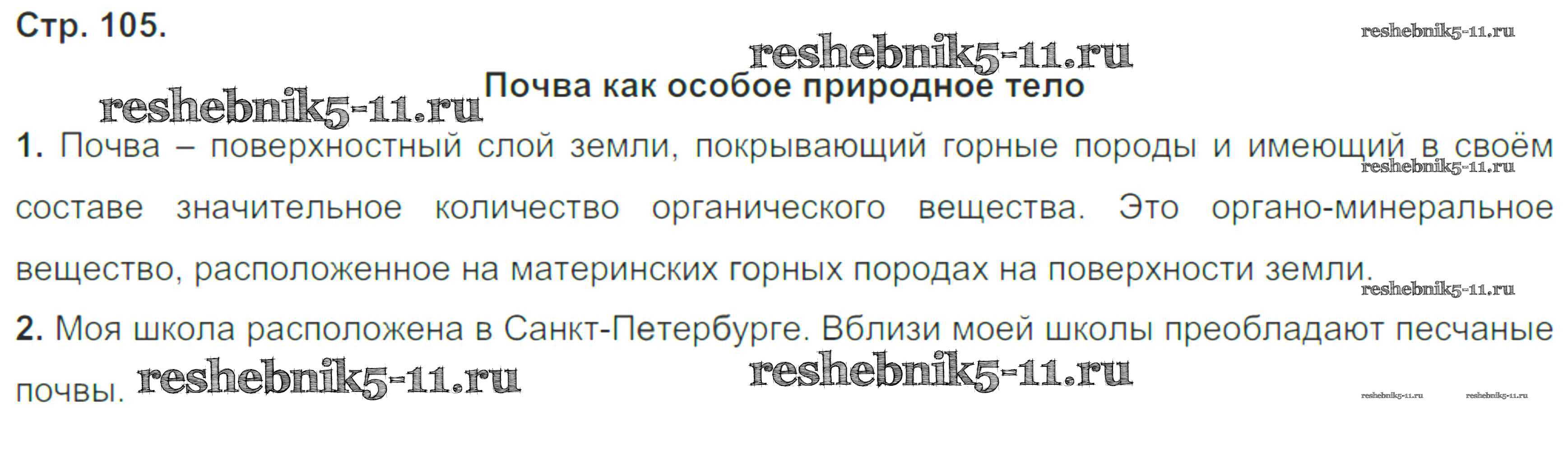 Готовая домашняя работа с ответами по Географии за 6 класс Румянцев, Ким, Климанова Рабочая тетрадь Вертикаль Дрофа 2015 ФГОС - Страницы тетради 105