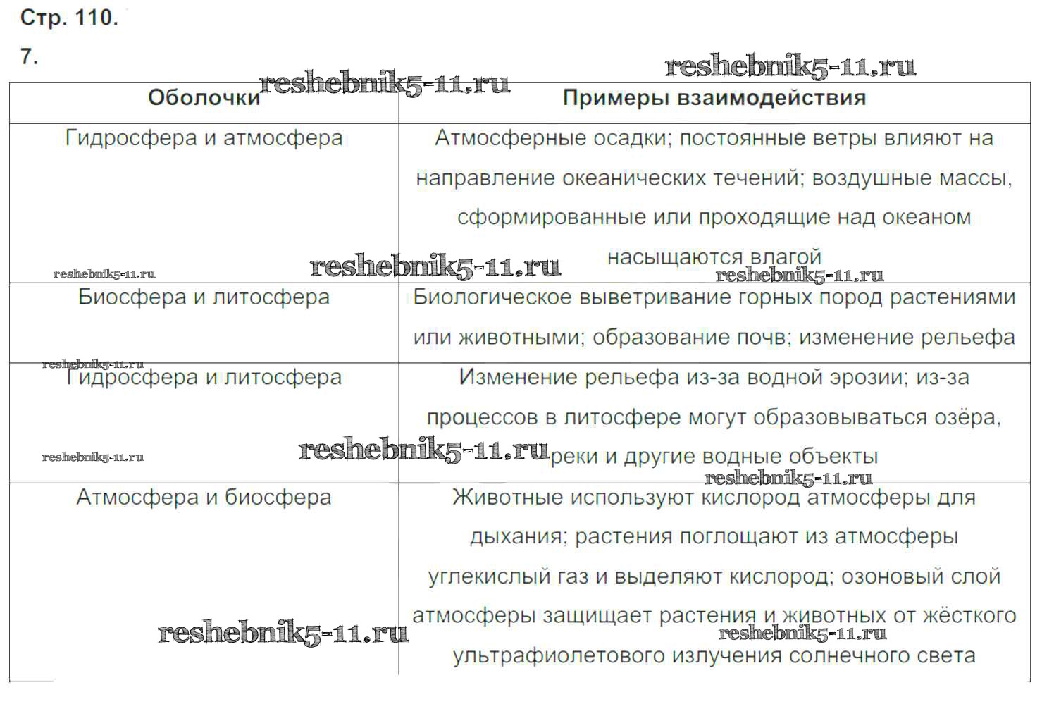 Готовая домашняя работа с ответами по Географии за 6 класс Румянцев, Ким, Климанова Рабочая тетрадь Вертикаль Дрофа 2015 ФГОС - Страницы тетради 110