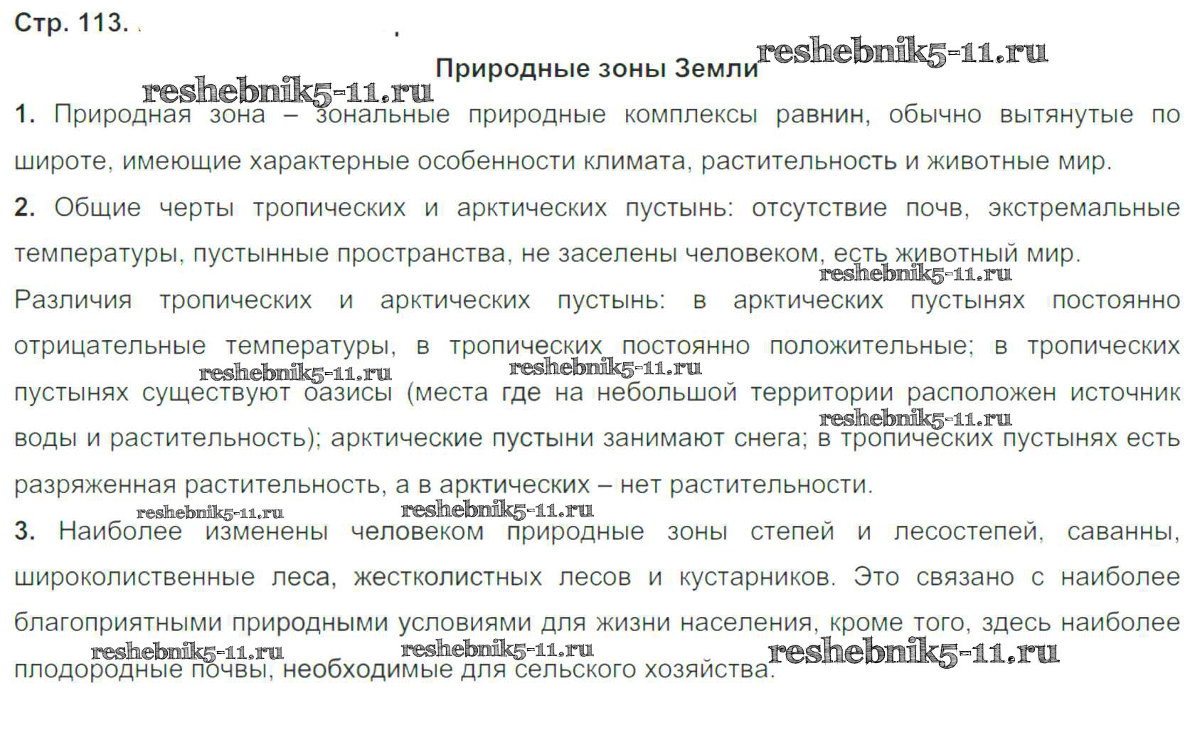 Готовая домашняя работа с ответами по Географии за 6 класс Румянцев, Ким, Климанова Рабочая тетрадь Вертикаль Дрофа 2015 ФГОС - Страницы тетради 113