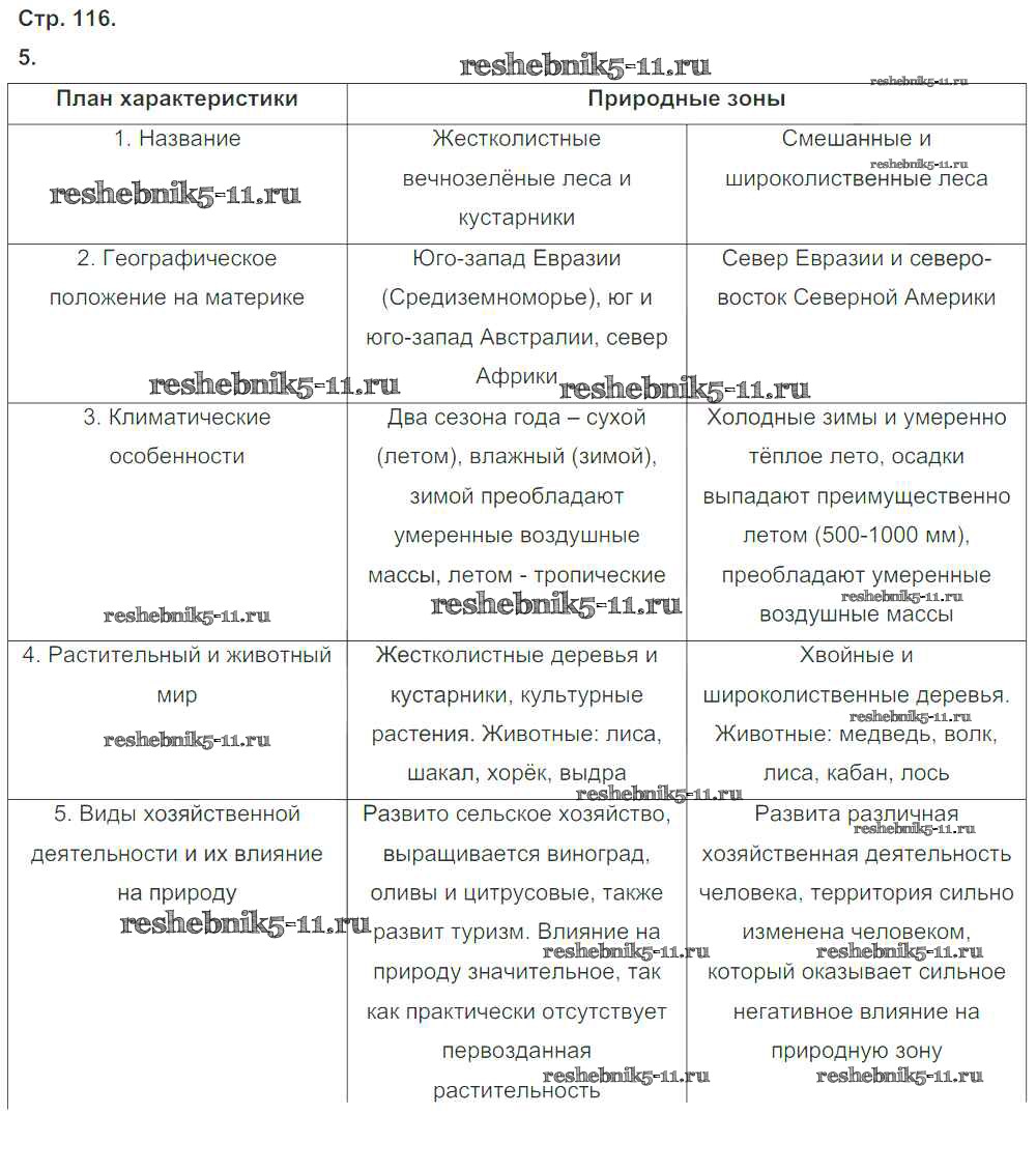 Готовая домашняя работа с ответами по Географии за 6 класс Румянцев, Ким, Климанова Рабочая тетрадь Вертикаль Дрофа 2015 ФГОС - Страницы тетради 116