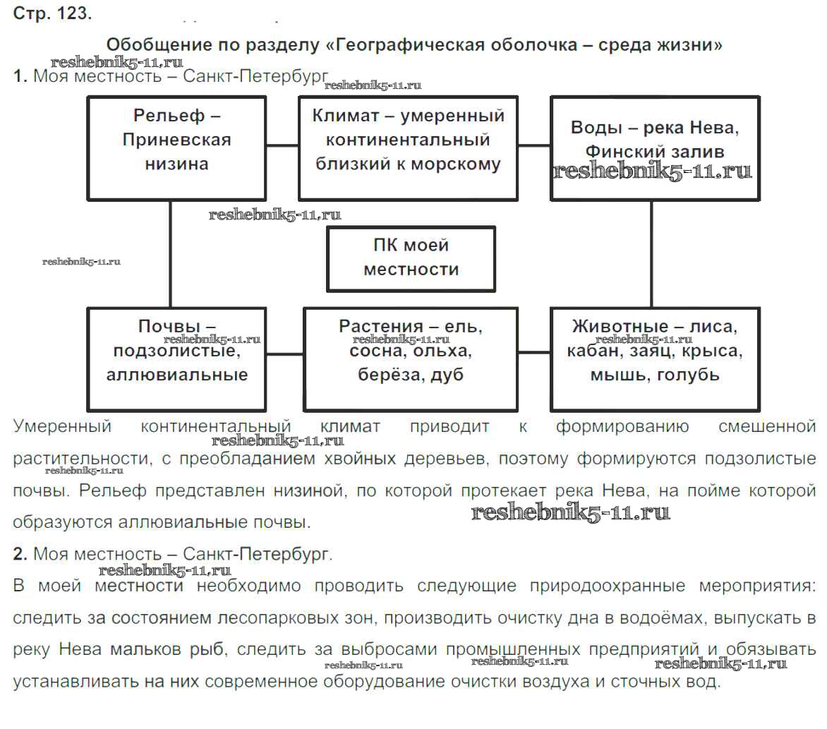 Готовая домашняя работа с ответами по Географии за 6 класс Румянцев, Ким, Климанова Рабочая тетрадь Вертикаль Дрофа 2015 ФГОС - Страницы тетради 123