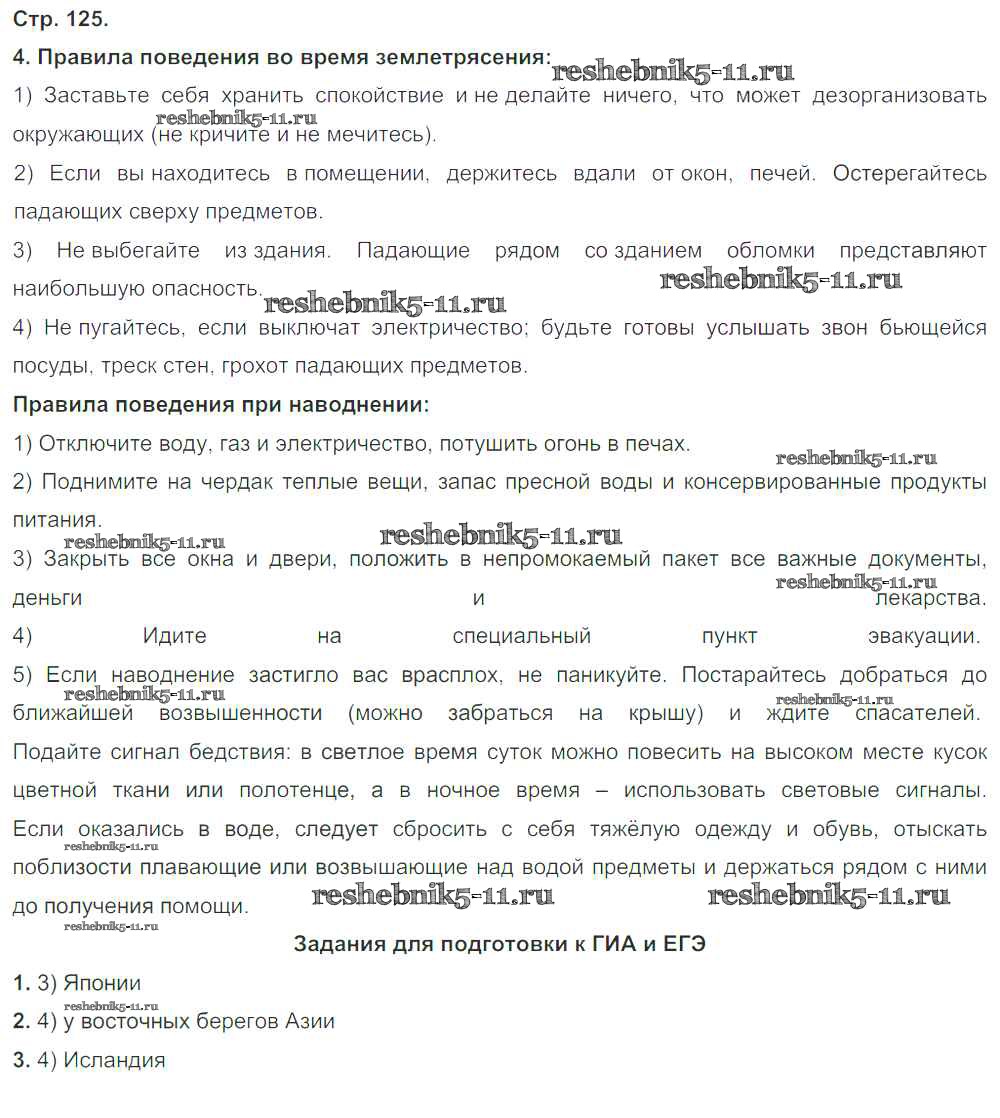 Готовая домашняя работа с ответами по Географии за 6 класс Румянцев, Ким, Климанова Рабочая тетрадь Вертикаль Дрофа 2015 ФГОС - Страницы тетради 125