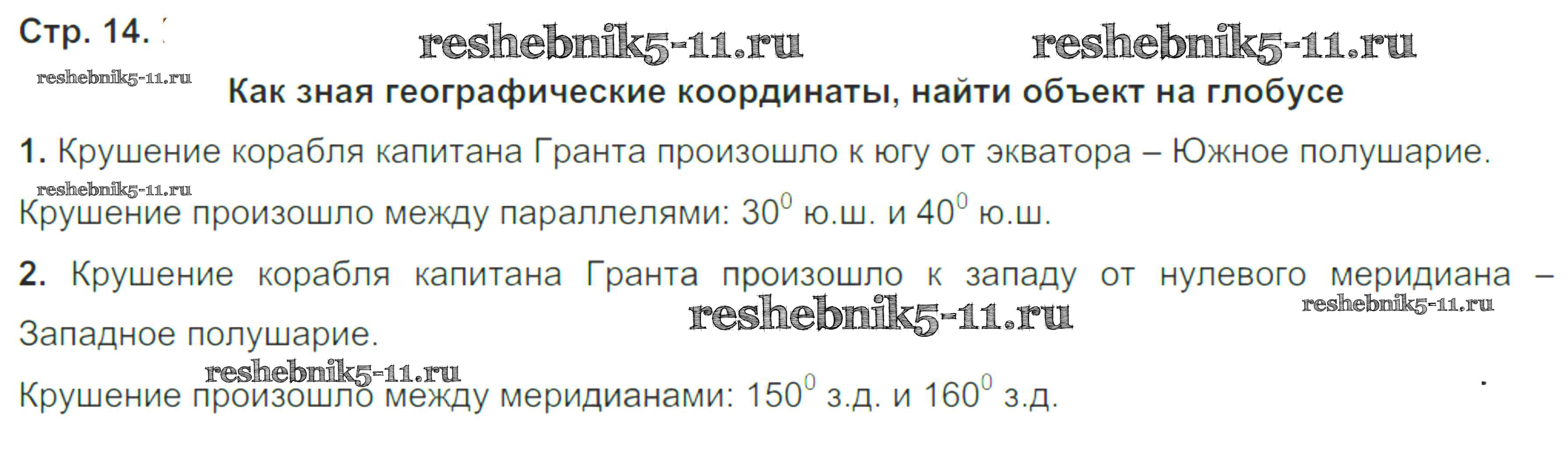 Готовая домашняя работа с ответами по Географии за 6 класс Румянцев, Ким, Климанова Рабочая тетрадь Вертикаль Дрофа 2015 ФГОС - Страницы тетради 14