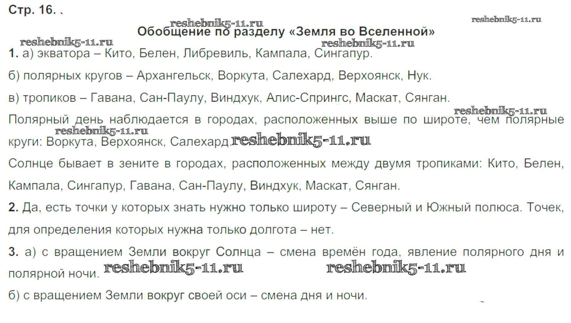 Готовая домашняя работа с ответами по Географии за 6 класс Румянцев, Ким, Климанова Рабочая тетрадь Вертикаль Дрофа 2015 ФГОС - Страницы тетради 16