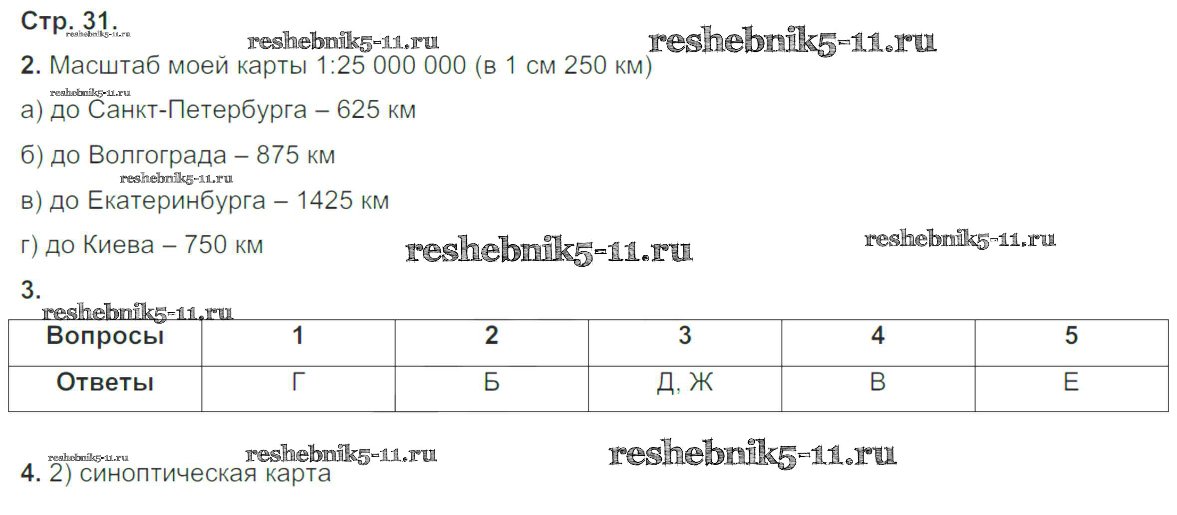 Готовая домашняя работа с ответами по Географии за 6 класс Румянцев, Ким, Климанова Рабочая тетрадь Вертикаль Дрофа 2015 ФГОС - Страницы тетради 31