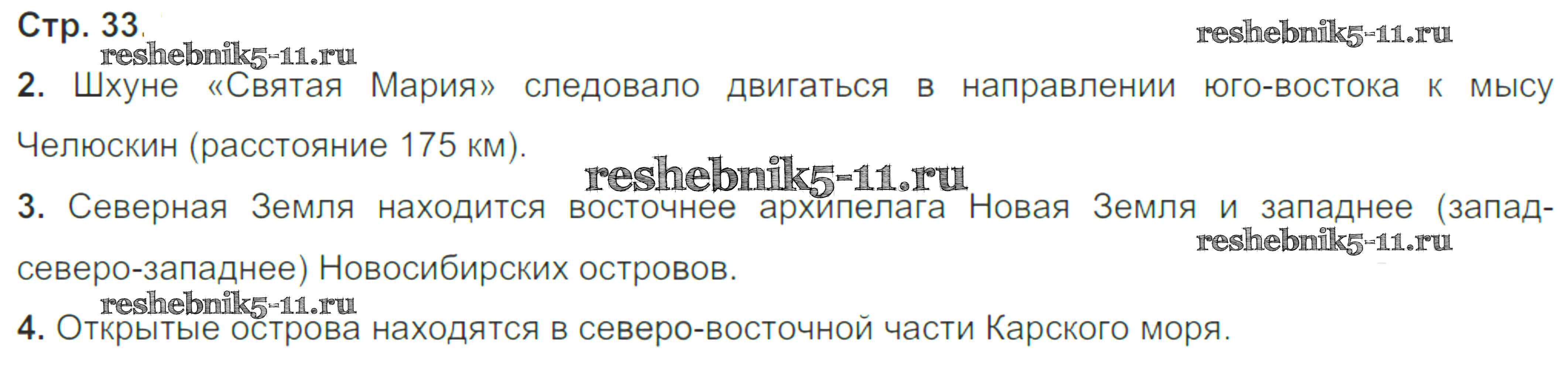 Готовая домашняя работа с ответами по Географии за 6 класс Румянцев, Ким, Климанова Рабочая тетрадь Вертикаль Дрофа 2015 ФГОС - Страницы тетради 33