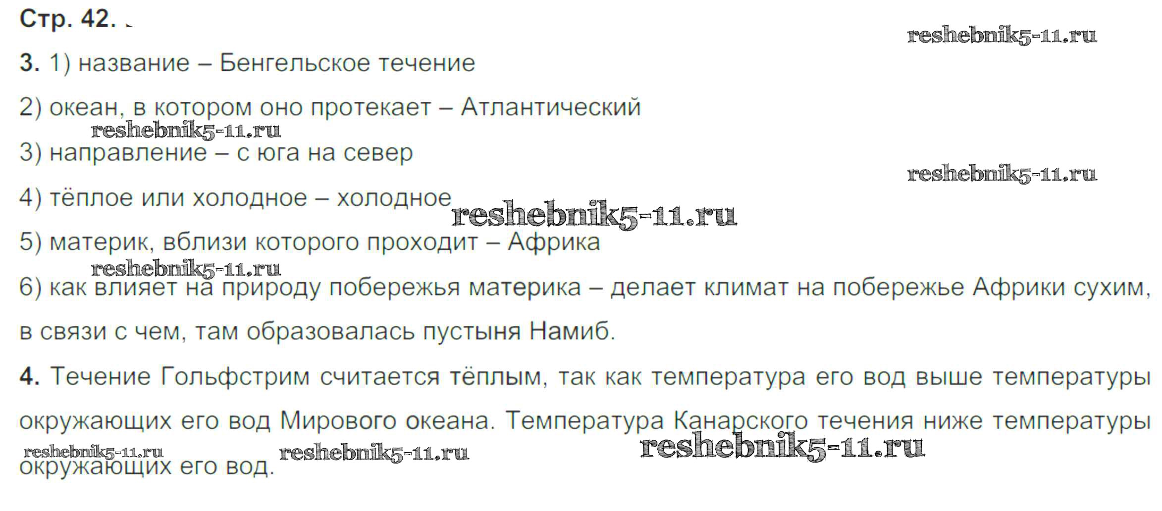 Готовая домашняя работа с ответами по Географии за 6 класс Румянцев, Ким, Климанова Рабочая тетрадь Вертикаль Дрофа 2015 ФГОС - Страницы тетради 42